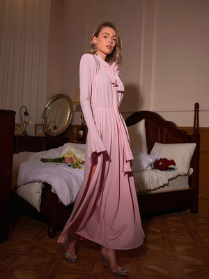Benton Long Sleeve Flower Maxi Dress In Pink