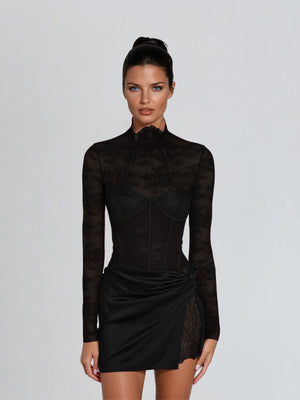 Cynosure Stand Collar Lace Dress In Black
