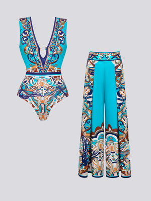 Dragonfly Ornate Ring-Detail Plunging Swimsuit Set