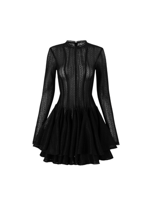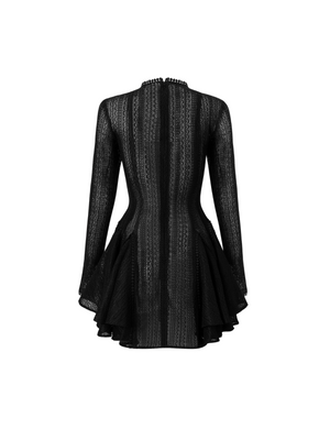 Edyta Long Sleeve Ruffle Mini Dress In Black