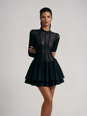 The Edyta Long Sleeve Ruffle Mini Dress in Black combines timeless elegance with playful details. Its long sleeves and delicate ruffles create a sophisticated yet flirty silhouette, perfect for evening events or stylish daytime outings. Crafted for comfort and style, this dress is a versatile addition that effortlessly elevates your wardrobe.