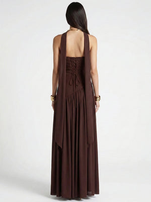 - Dramatic corset-style lace-up back for a custom, snatched fit