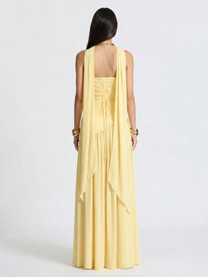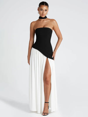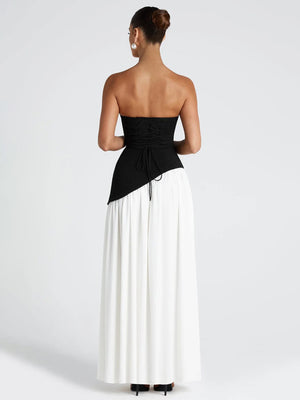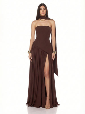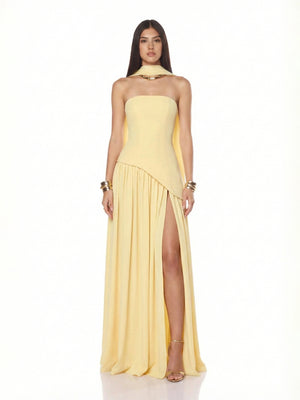 Ethereal Strapless Corset-Back High-Slit Maxi Dress