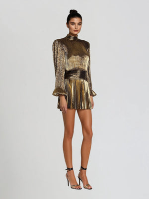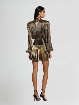 Hamilton Pleated Metallic Dress In Gold