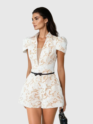 Kafele V Neck Lace Embroidered Romper