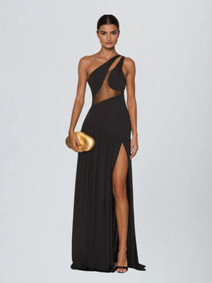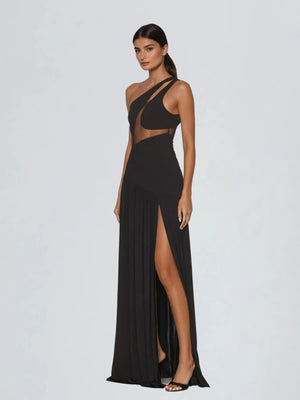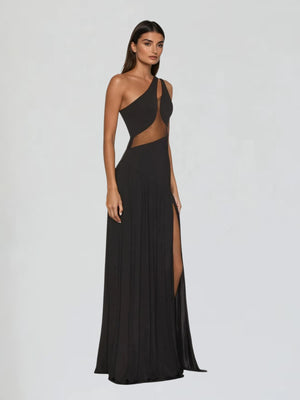 Lateefah One Shoulder Split Maxi Dress In Black