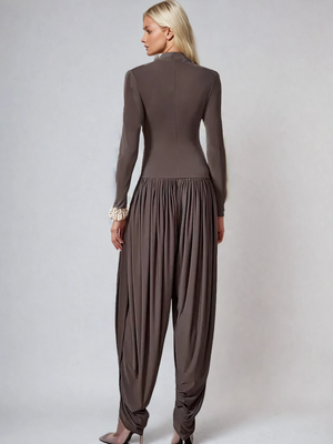 Laurien Long Sleeve Ruched Jumpsuit In Coffee