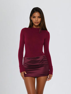 Elevate your everyday wardrobe with the Majora Long Sleeve Mini Dress in Wine. This versatile piece combines timeless elegance with modern sophistication, featuring long sleeves that provide graceful coverage while the mini silhouette keeps things fresh and contemporary. The crisp wine hue works seamlessly for any occasion—dress it up with heels and jewelry for evening events or keep it casual with sneakers for daytime charm. Perfect for layering or wearing solo, this dress is an essential addition to any style-conscious closet.