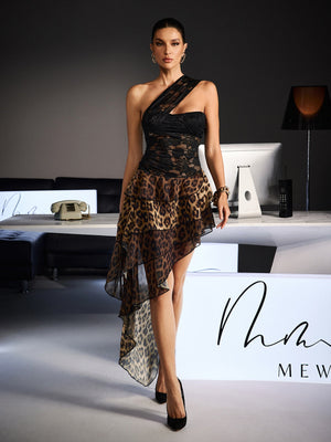 Raelira One Shoulder Lace Leopard Maxi Dress