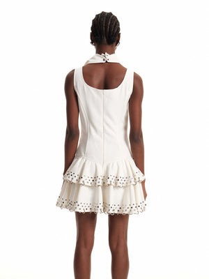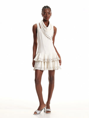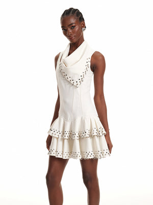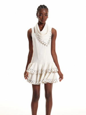 Ring-Embellished Ruffle Mini Dress