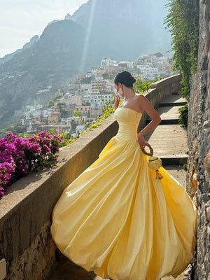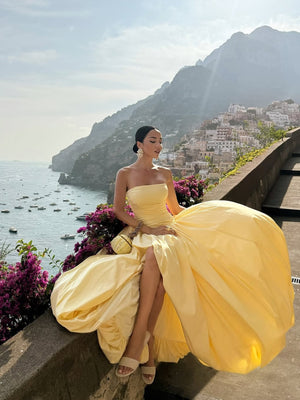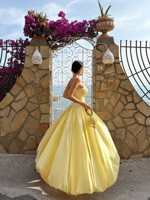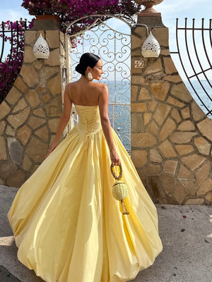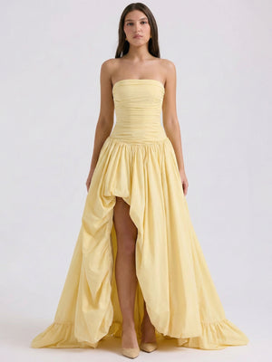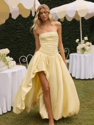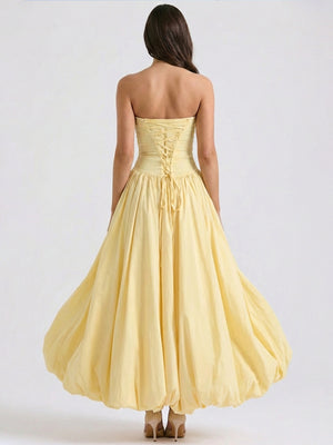 Strapless Corset-Back Bubble Hem Maxi Dress