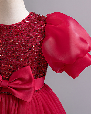 ✨Sparkle Garden Dress – Sequin Blooms & Bow 🌸