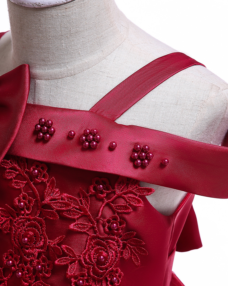 ✨Sweetheart Sparkle : Strapless Beaded Flower Girl Dress with Bow Details 🌸