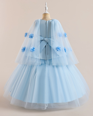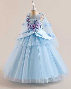 ✨Tulle Cape Gown – Satin Insets & Floral ✨