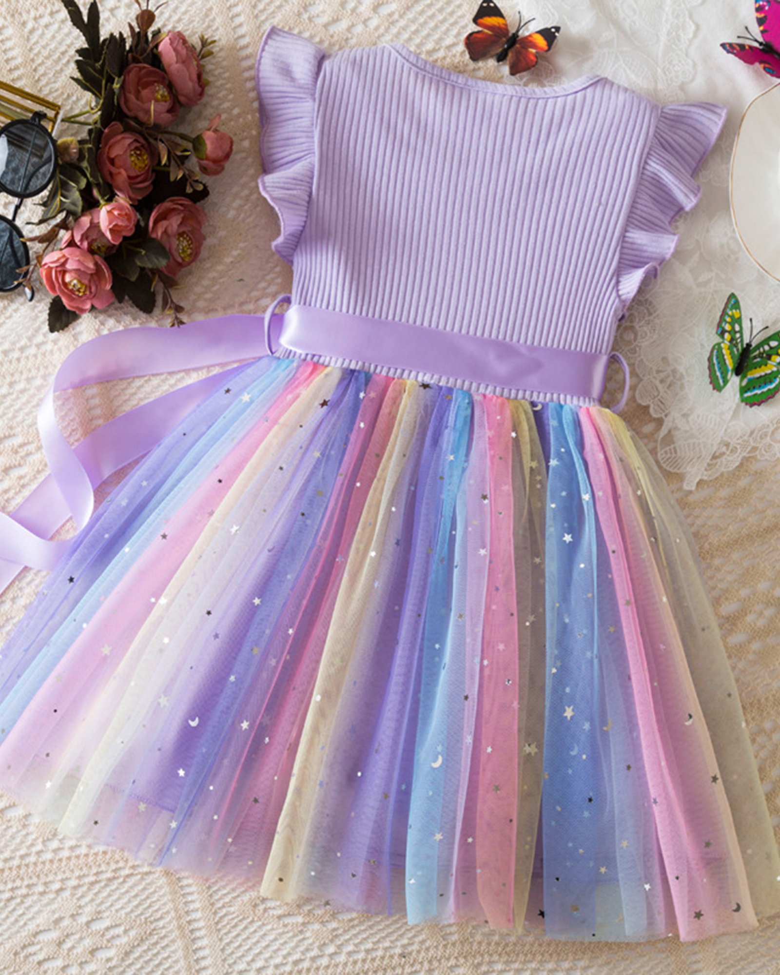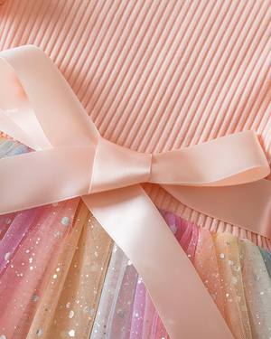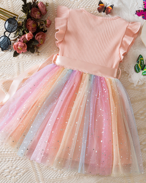 🌈Cotton & Rainbow Tulle Dress – Playful Comfort Meets Party Magic✨