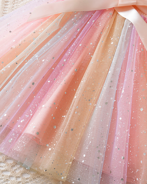 - Rainbow ombré tulle skirt** that shimmers when moving
