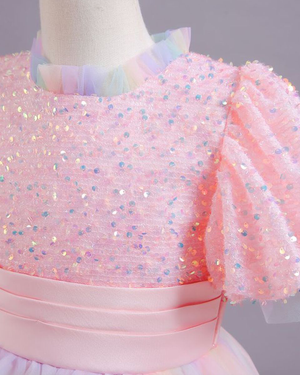 🌟Sequin & Rainbow Tulle Dress – Sash Waist Elegance 🌟