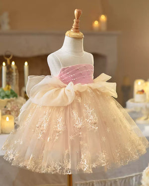 π· Pink & Champagne Dress β Pearl Accents π·