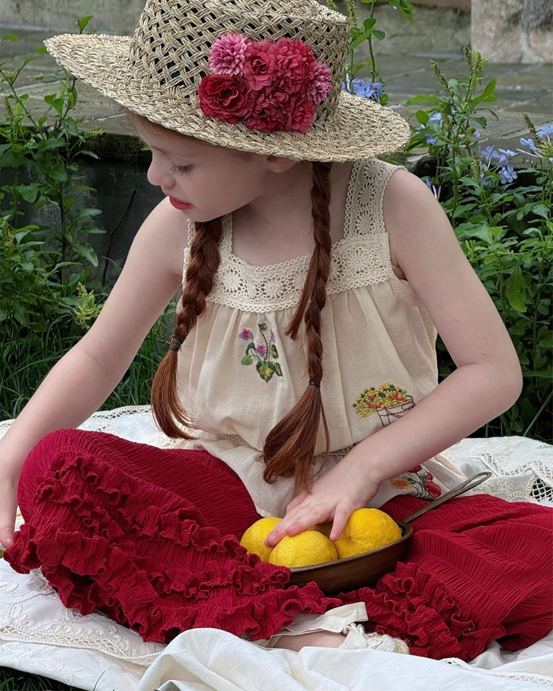 • Delicate lace-trim cami** – hand-embroidered micro florals