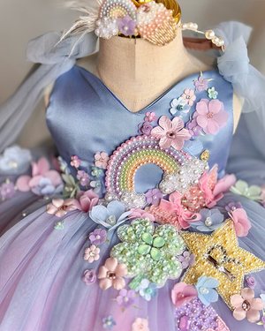 🌸Azure Blossom" Couture Birthday Dress – Handcrafted Magic🌸