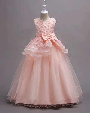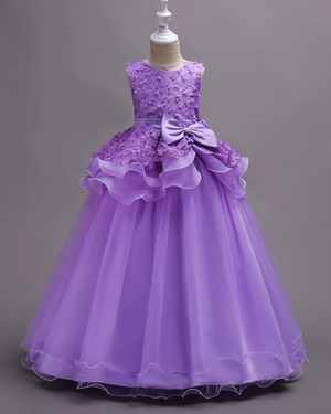 · Delicate 3D floral appliqués blooming across the bodice and skirt.