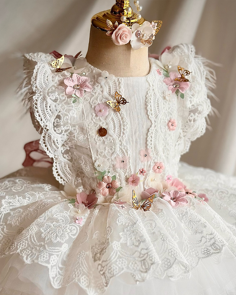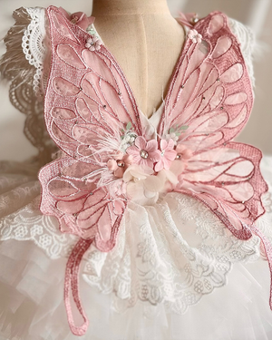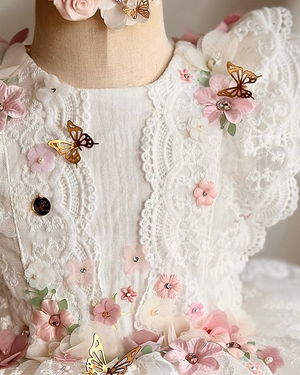 • **Handcrafted 3D embellishments** – pink silk roses + kinetic gold butterflies