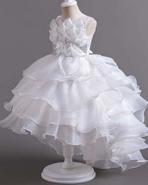 - Asymmetrical hemline** (tea-length front/floor-length back)