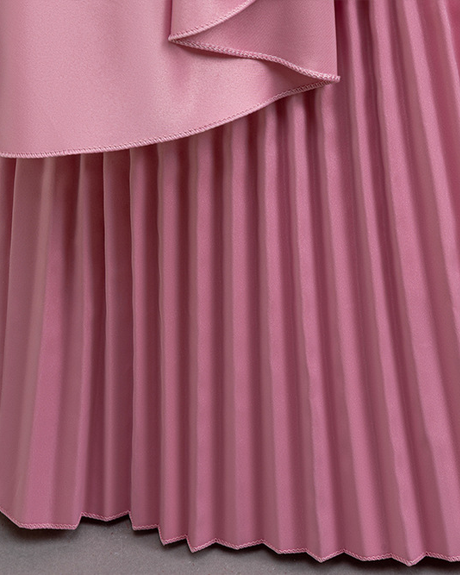 · Two-tier skirt (asymmetrical top layer + pleated underlayer)