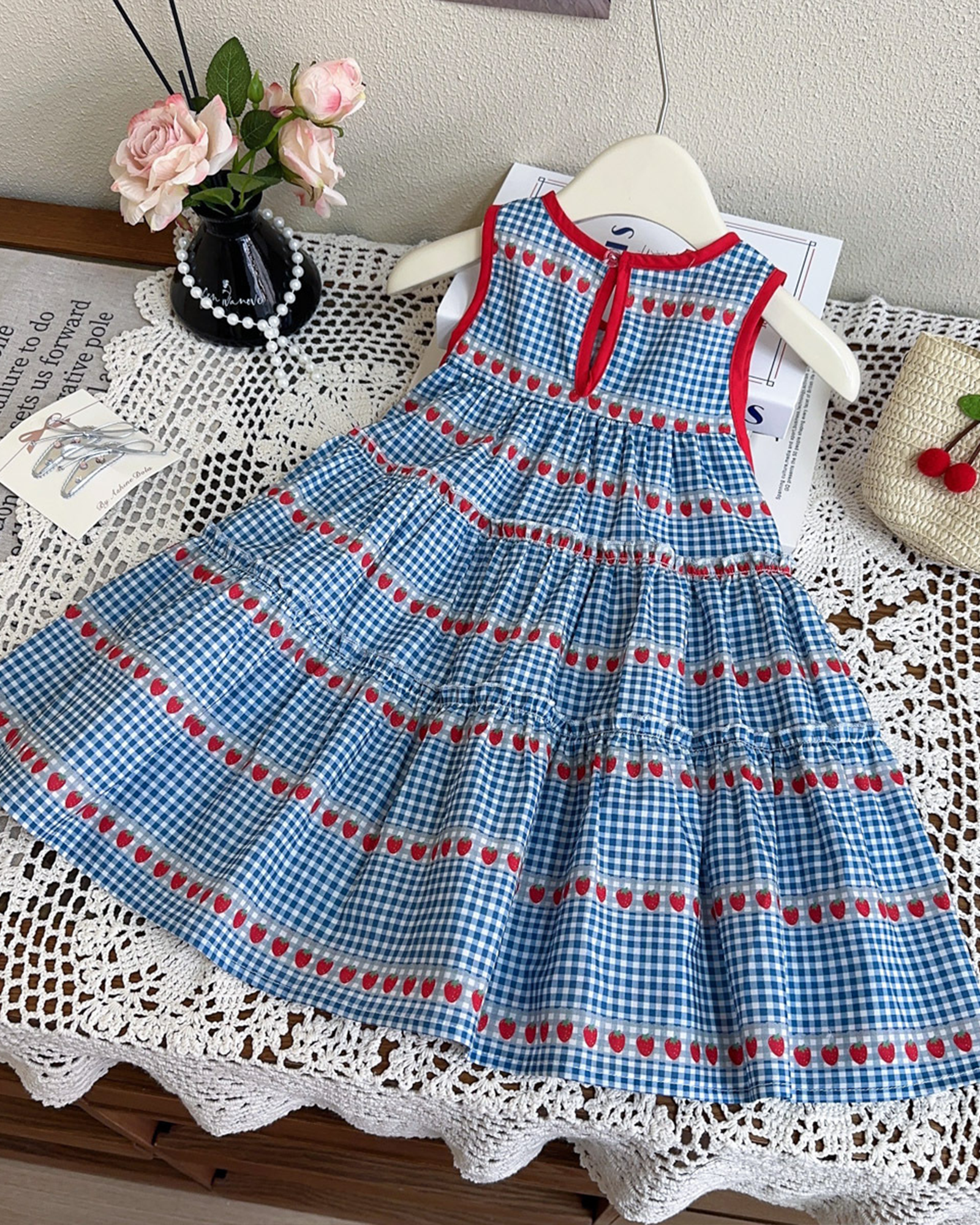 Home πŸ’ Cherry Picnic Dress Set – Sweet & Breathable Cotton Play Dress 🌸