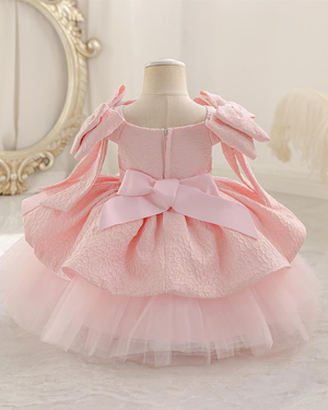 🎀Double Twirl: Tiered Flower Girl Dress with Shoulder Bow Accents✨