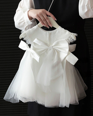 🎀Ivory Angel: Pure White Lace Flower Girl Dress with Silk Bow 👼