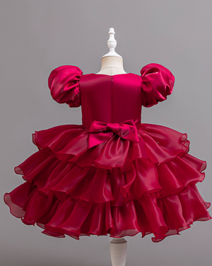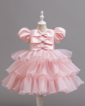 ๐ Bow Charm Cake Dress โ Puff Sleeves & Princess Layers โจ