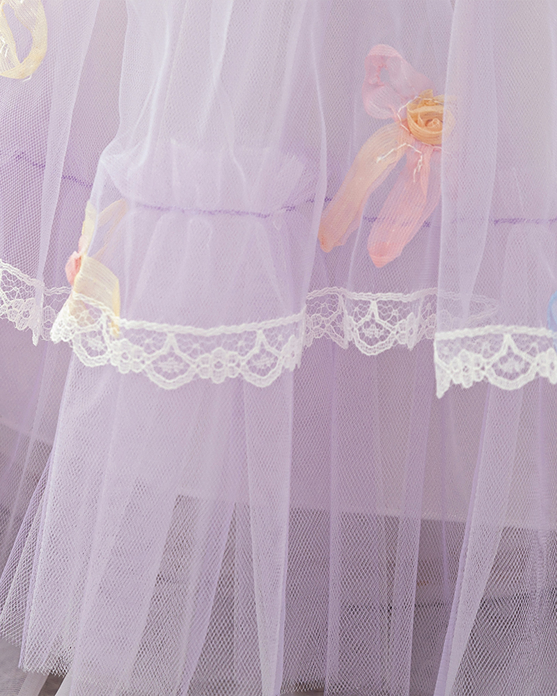🦋Butterfly Whispers: Sheer Tulle Princess Gown with Scattered Bow Details✨