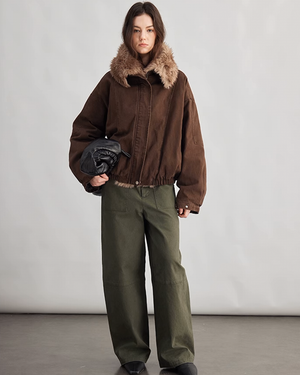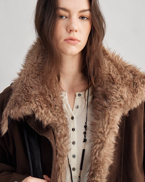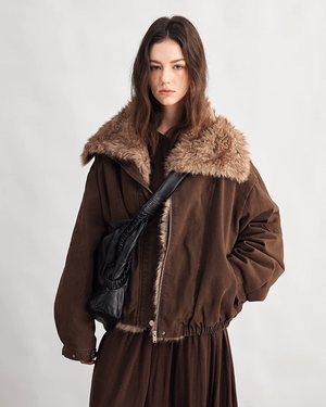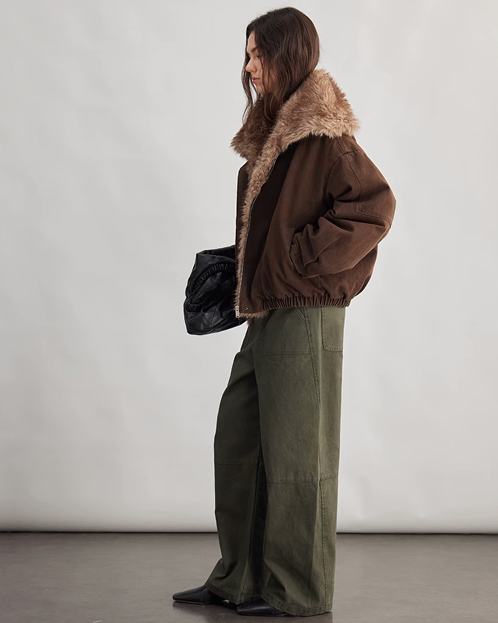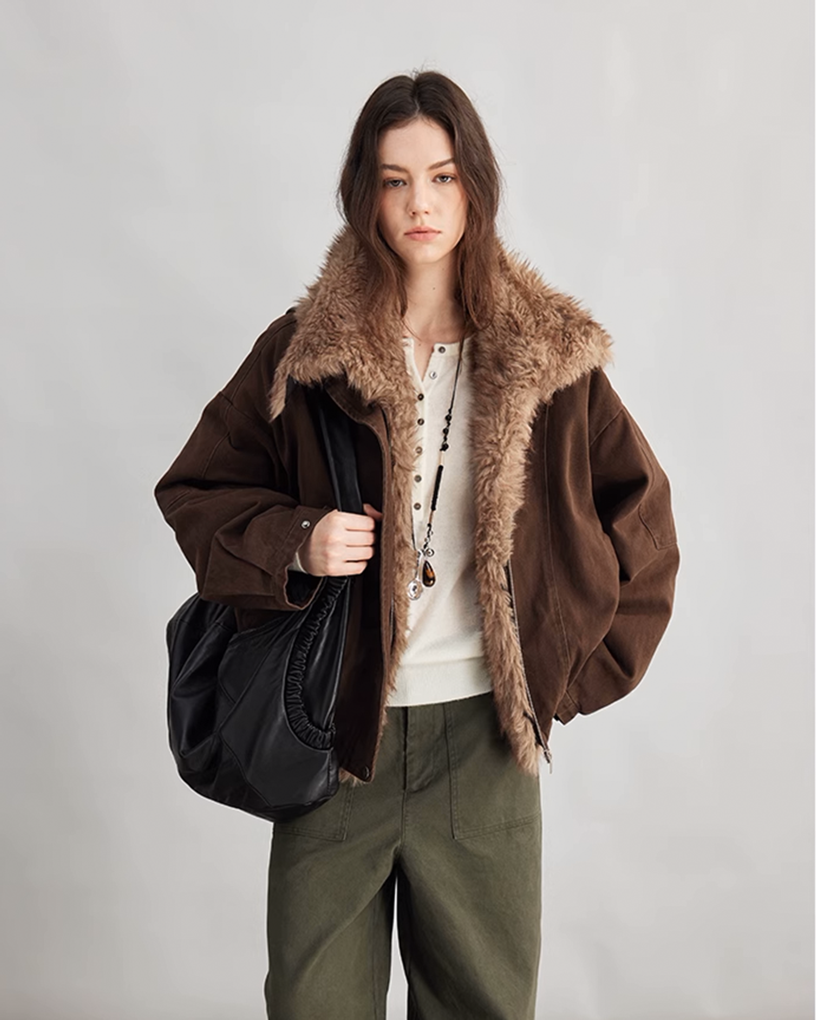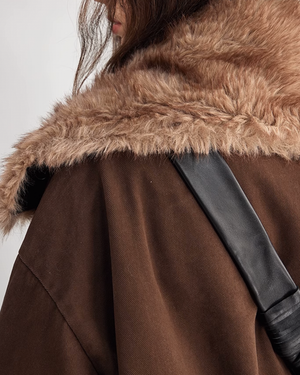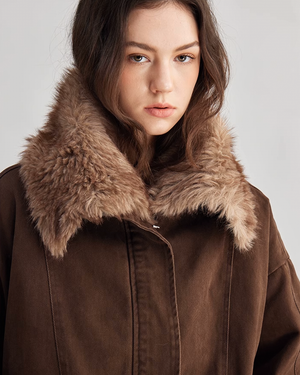 - Crafted from premium cotton denim with soft fox fur collar for an urban-luxury feel
