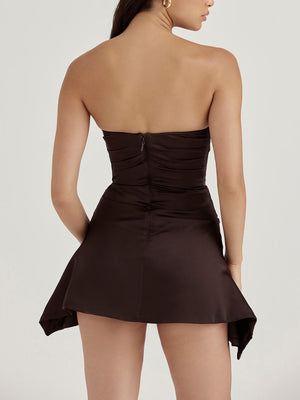 Draped Ruched Flared Strapless Corset Mini Dress