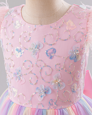 🦋Feathery Flutter : Whimsical Ombre Dress with 3D Bow for Little Queens ✨