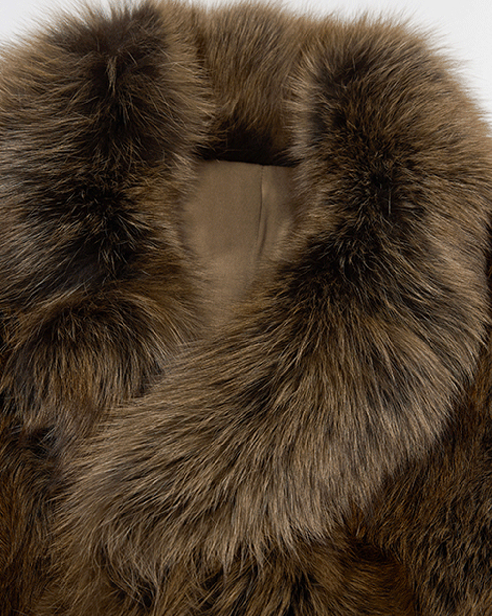 Firelady Saga Furs Fox Fur Coat with Built-In Fishbone Collar