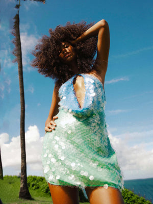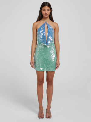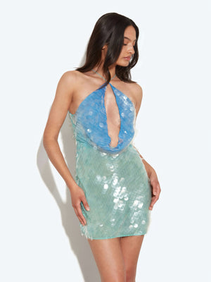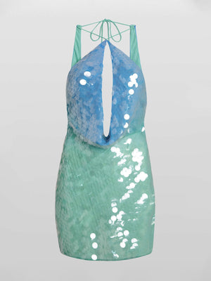 Gradient Sequin Halter Keyhole Open-Back Mini Dress