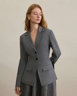 • Elegant tailored blazer highlights a slim, structured silhouette