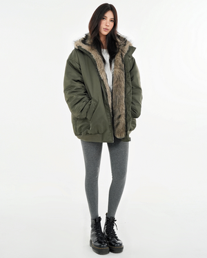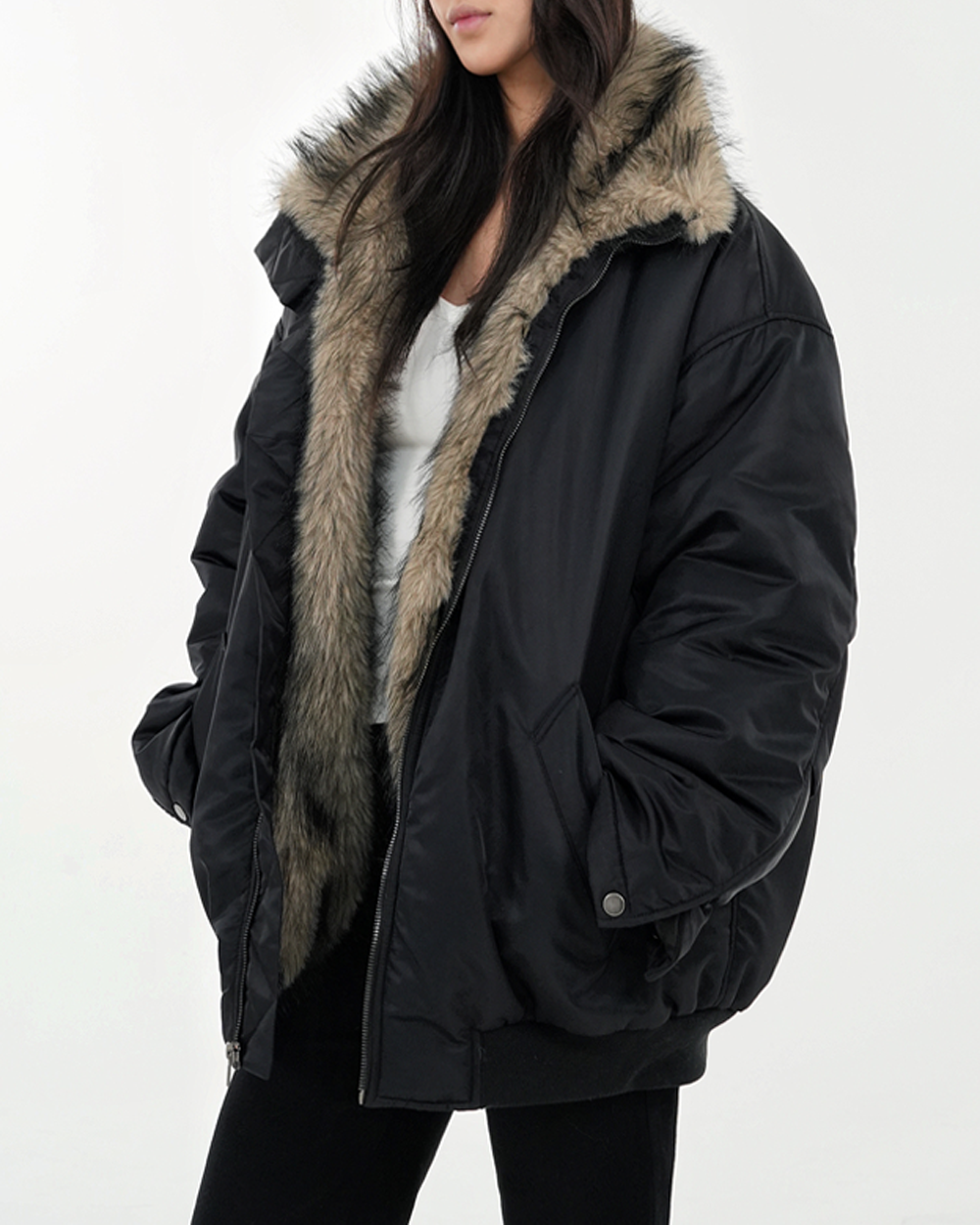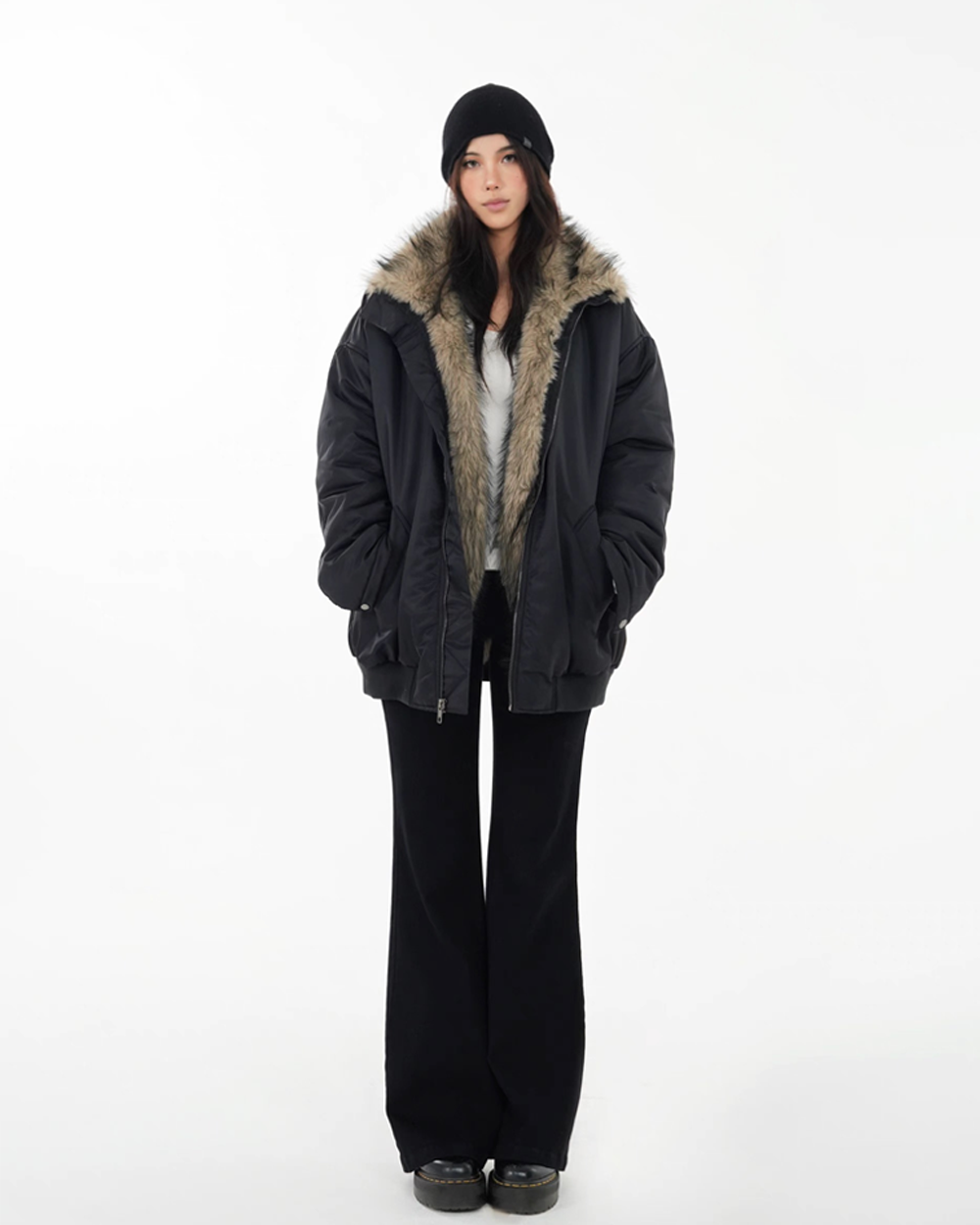 • Design Elements: Thick cotton shell, detachable plush lining, oversized fit