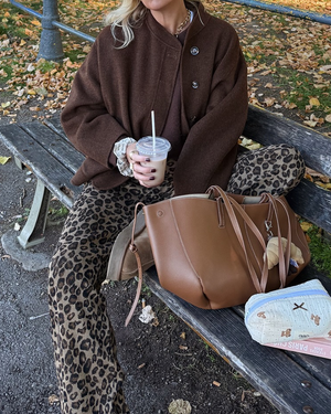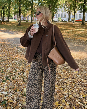 - Design Elements: Leopard print, straight fit, soft corduroy texture