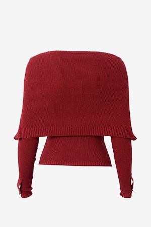 Effortlessly chic, this Scarlet Faux-Layered Knit Top combines the cozy look of a shawl wrap with the sleek silhouette of a fitted cardigan. The innovative trompe-l'œil design features a self-tie neckline that mimics a sweater draped over your shoulders, framing the collarbone beautifully. Crafted from a high-stretch modal blend, it offers a buttery-soft touch with a subtle silky luster. The ribbed texture and button-down front create a flattering, body-hugging fit that elevates any casual or date-night outfit.