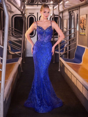 Spaghetti Strap Sheer Corset Sequin Lace Mermaid Gown Maxi Dress