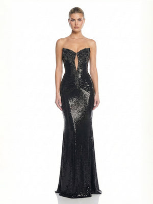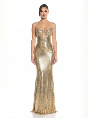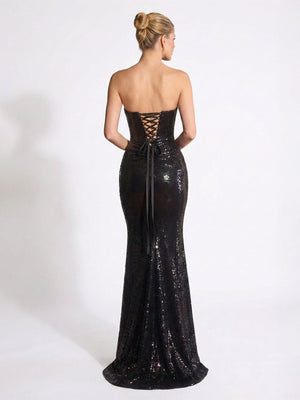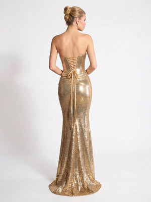 Strapless Metallic Sequin Mermaid Gown Corset Prom Maxi Dress