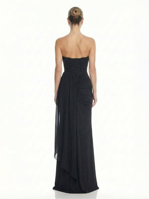 Strapless Ruched Chiffon Gown Draped Slit Dress