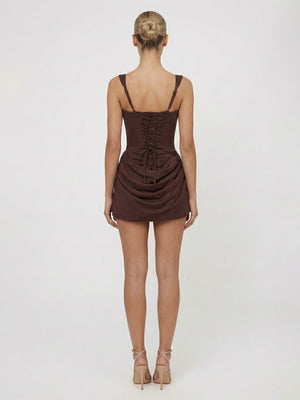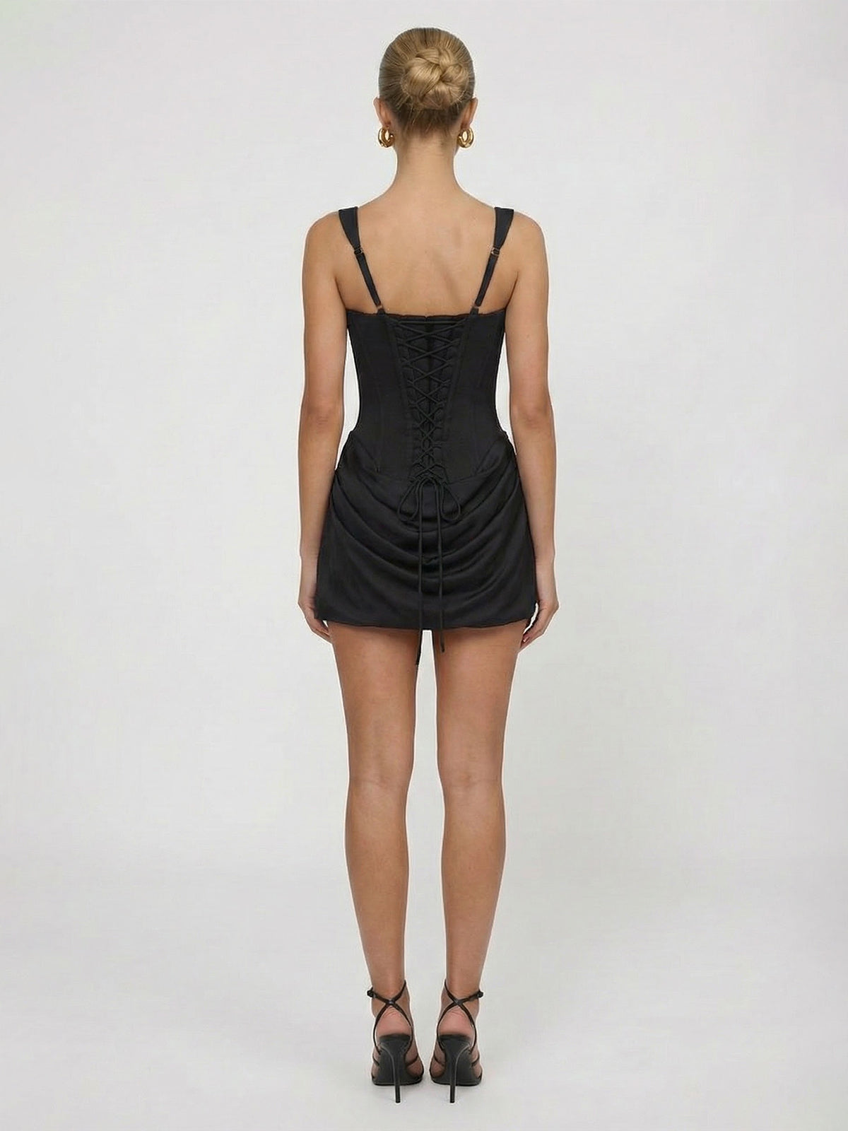 Structured Corset Lace-Up Back Draped Bodice Mini Dress