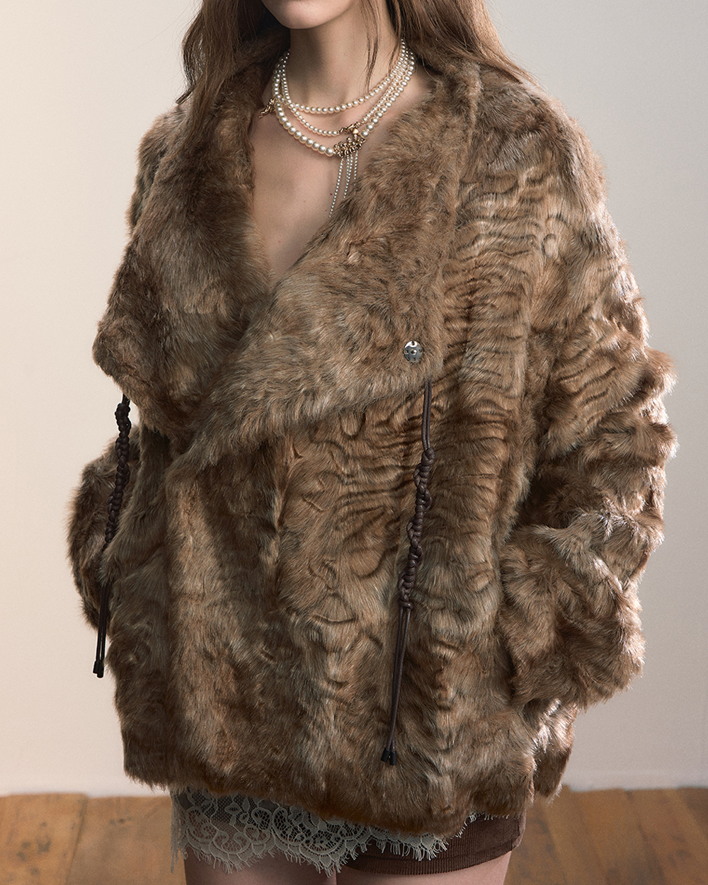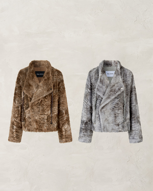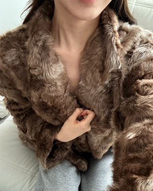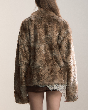 VIAPITTI Textured Faux Fur Jackets with Oversized Lapel