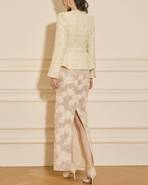 White Mist Rose Sequin Bodycon Skirt